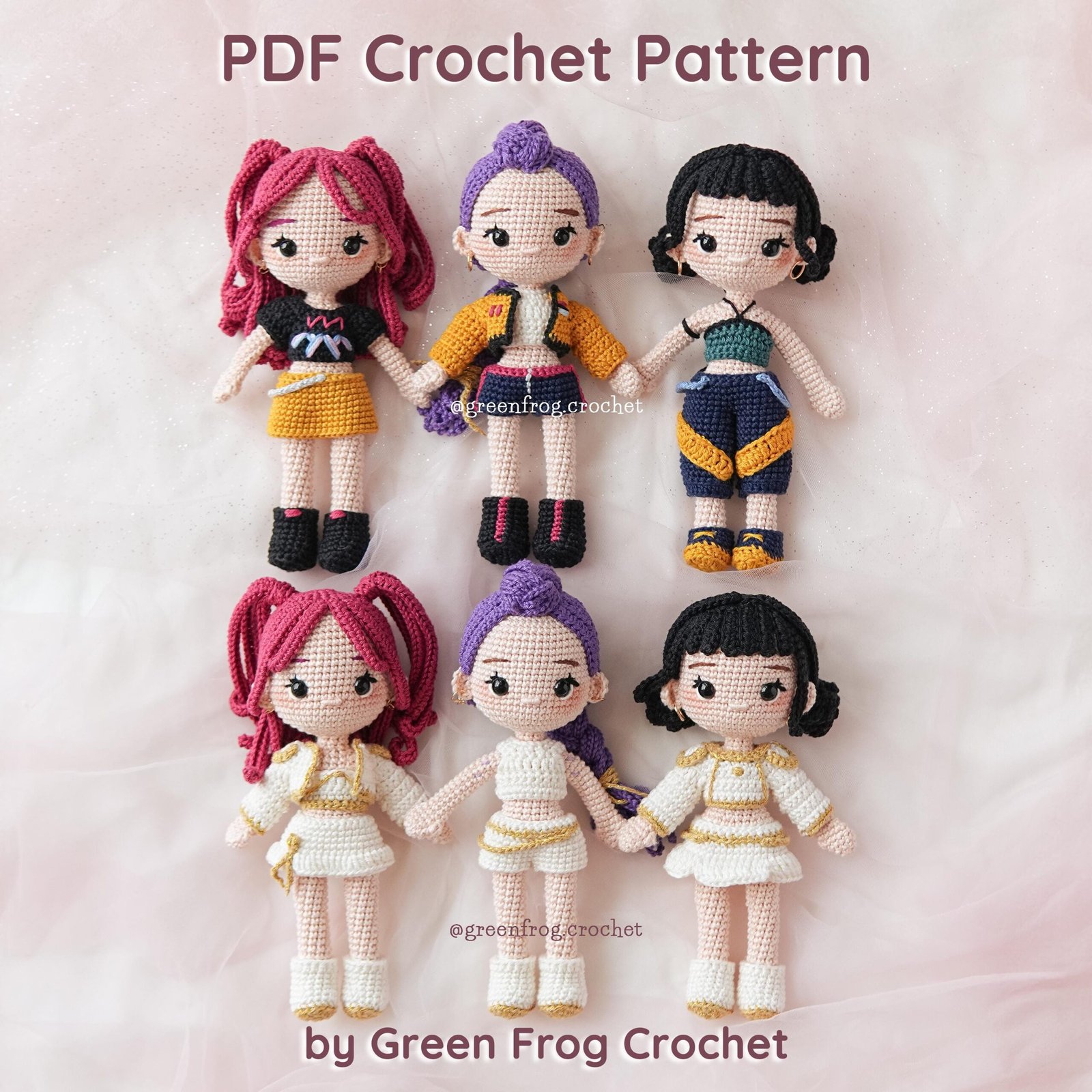 Are you a crochet enthusiast looking for a fun and imaginative project? This Pattern Bundle 3-in-1 is the perfect match for you! Crafted with care and loaded with unique designs, this bundle allows you to create adorable Kpop-inspired crochet dolls, each one fashioned with two removable outfits. Let your creativity flourish while designing these adorable amigurumi dolls and enjoy the endless possibilities of playing dress-up with their stylish ensembles.